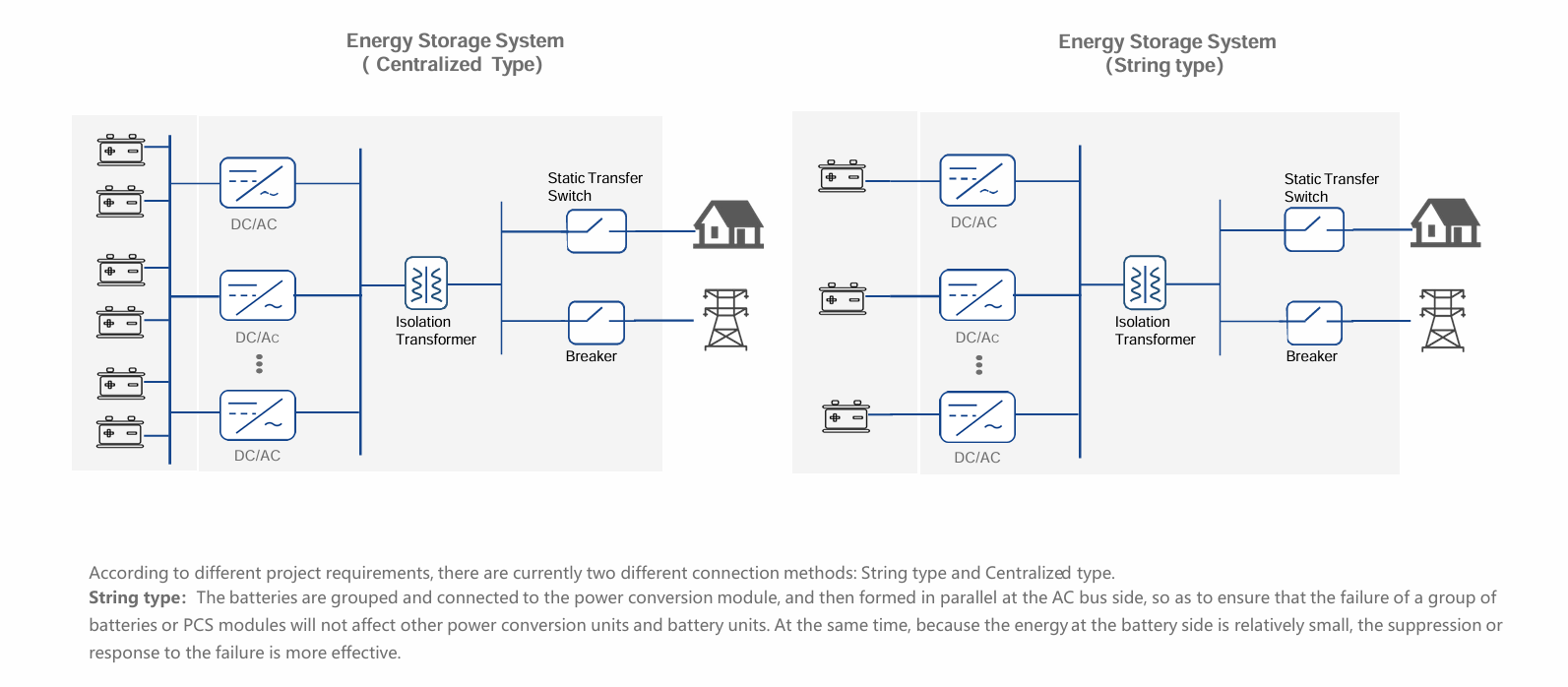 Weusestandardbatterymodules,PCSmodules,BMS,EMSandother systemstoformstandardcontainerstobuildlarge-scale grid-sideenergy storageprojects. Thestandardized20feet container systemcanbeconfiguredwith1MWH500KWenergy storage system. The standardizedand prefabricateddesign reducesuser customization timeandconstructioncosts, andreducessafetyhazardscausedbylocal installationdifferencesandmanagement risks. Itmeetstheapplicationneedsof regional powergridpeak regulation, frequencyregulation,voltageregulation,emergencyresponse, newenergyconsumption,etc.,and ensuresthenormaloperationof the powersystem