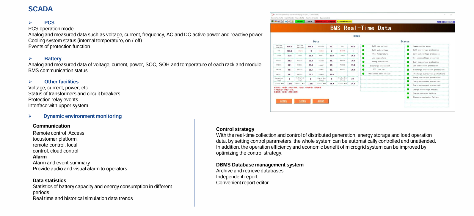System operation data monitoring, operation strategy management, historical data record, system status record, etc
